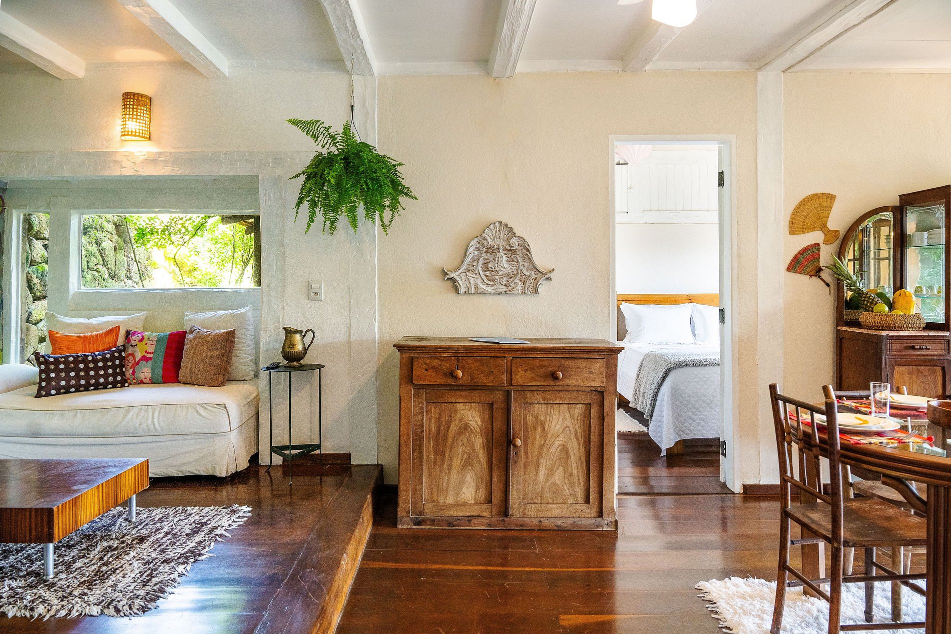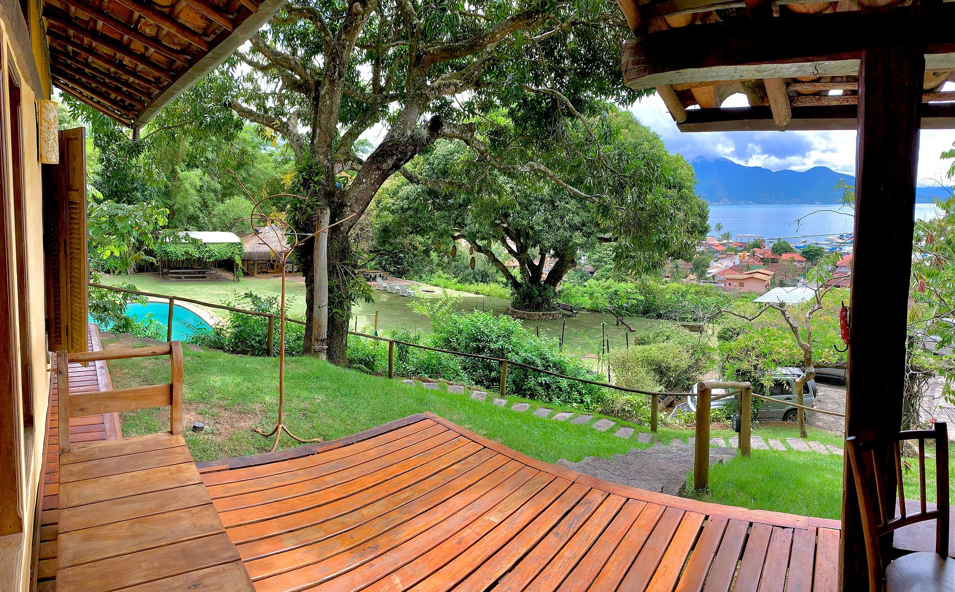 Located 600m from Vila (historic center) and 300m from the nearest beach, Casa Bambu is in a 7,000m² ornamental garden with frontal views of the sea, 4 natural pools with water from the waterfall, as well as one with treated water and stone bottom, complete kiosk, dining tables with splendid views of the sea, gym area, as well as waterfalls spread throughout the property. Here you will find everything you need for unforgettable days of rest and immersion in nature without giving up top-notch comfort and proximity to the city's main attractions!
