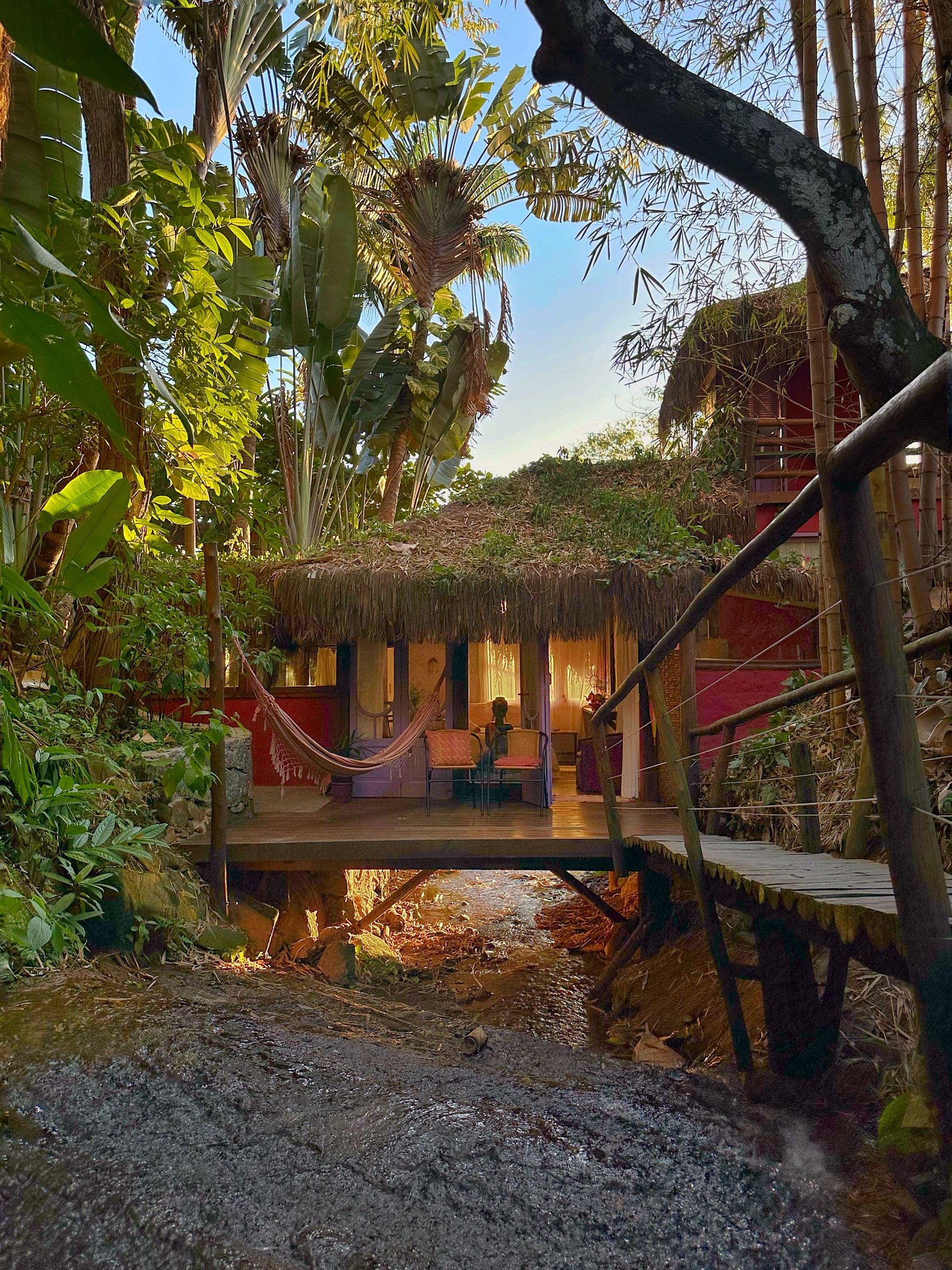 Complete house on a paradisiacal plot of 7,000m² with 9 other independent and private houses for couples. Casa Cachoeira has a large bedroom with air conditioning, Wifi and Smart TV, a fully equipped kitchen with everything you need for a perfect stay, bathroom with gas shower, hairdryer overlooking the waterfall, and a spacious balcony facing the waterfall ( natural waterfall) that harmonizes the environment with the sound of the water! It's an immersive experience with top-notch comfort!