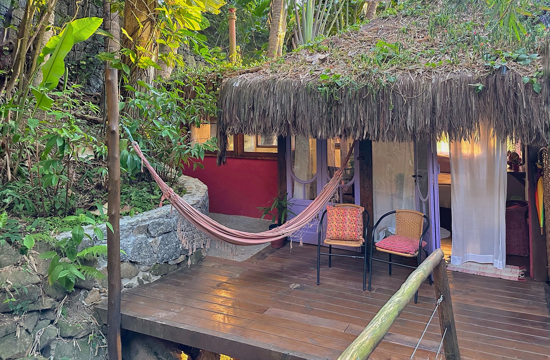 Complete house on a paradisiacal plot of 7,000m² with 9 other independent and private houses for couples. Casa Cachoeira has a large bedroom with air conditioning, Wifi and Smart TV, a fully equipped kitchen with everything you need for a perfect stay, bathroom with gas shower, hairdryer overlooking the waterfall, and a spacious balcony facing the waterfall ( natural waterfall) that harmonizes the environment with the sound of the water! It's an immersive experience with top-notch comfort!