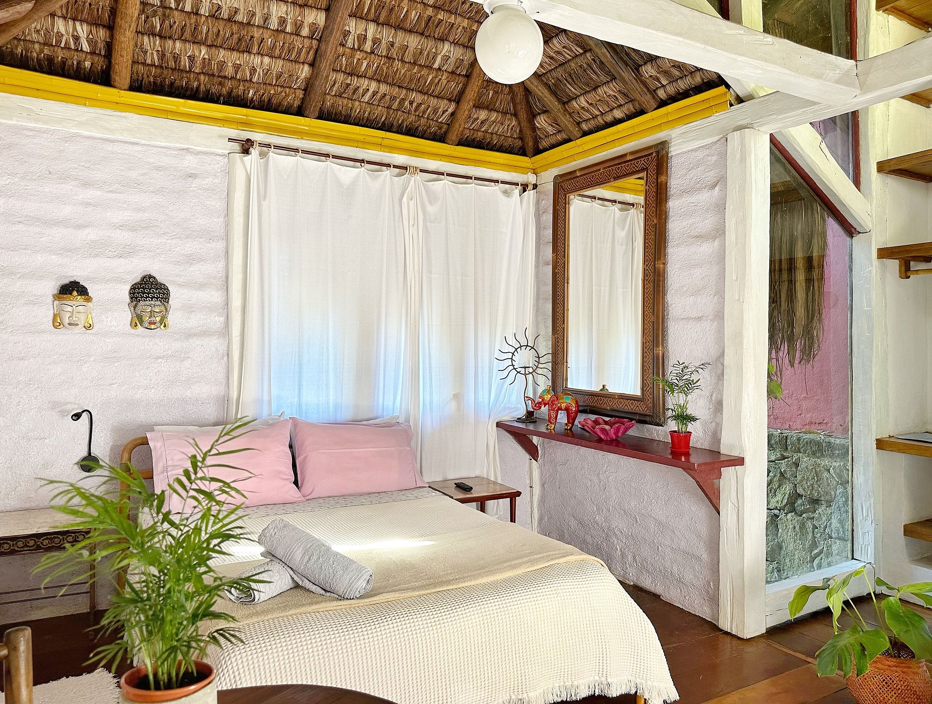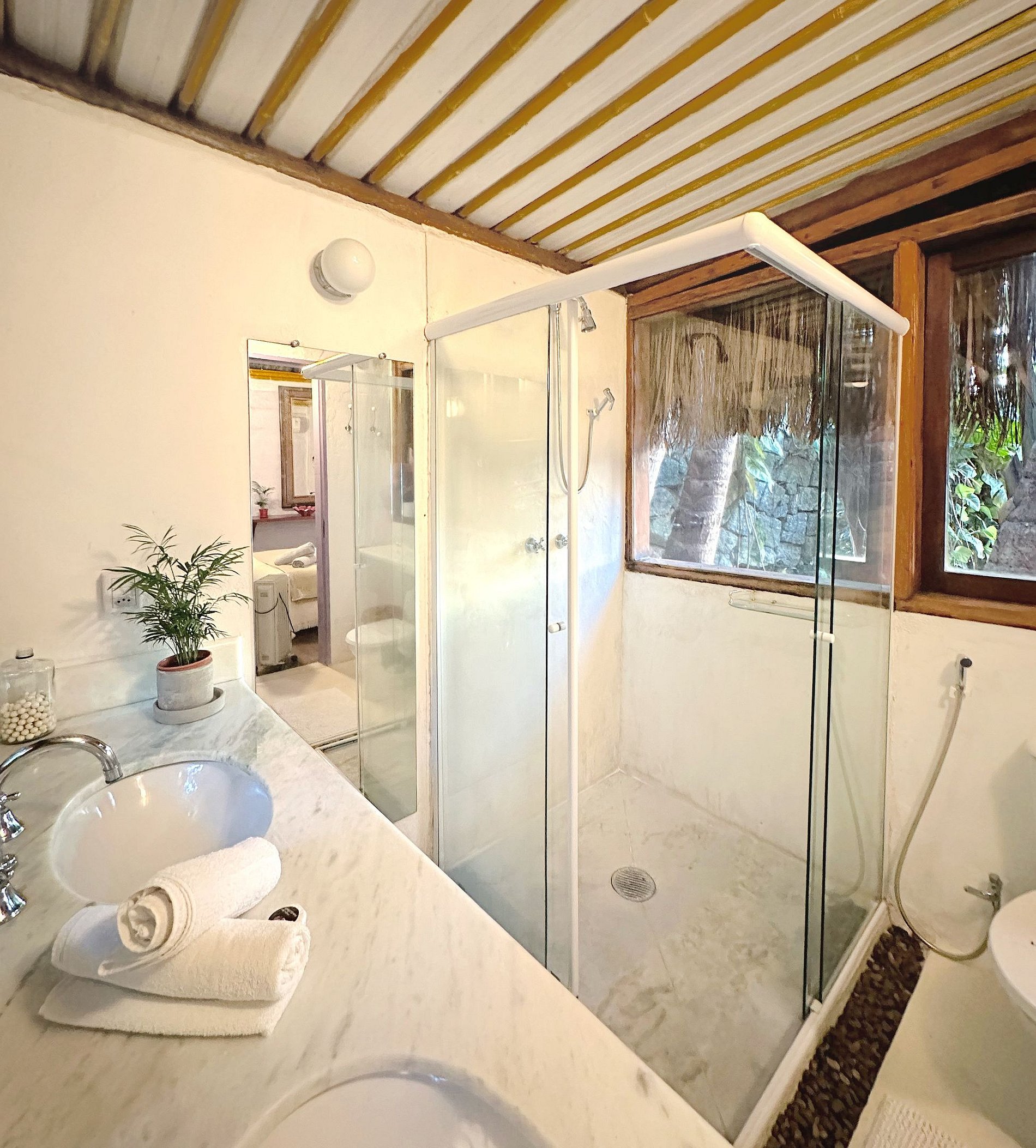 Complete house on a paradisiacal plot of 7,000m² with 9 other independent and private houses for couples. Casa Cachoeira has a large bedroom with air conditioning, Wifi and Smart TV, a fully equipped kitchen with everything you need for a perfect stay, bathroom with gas shower, hairdryer overlooking the waterfall, and a spacious balcony facing the waterfall ( natural waterfall) that harmonizes the environment with the sound of the water! It's an immersive experience with top-notch comfort!