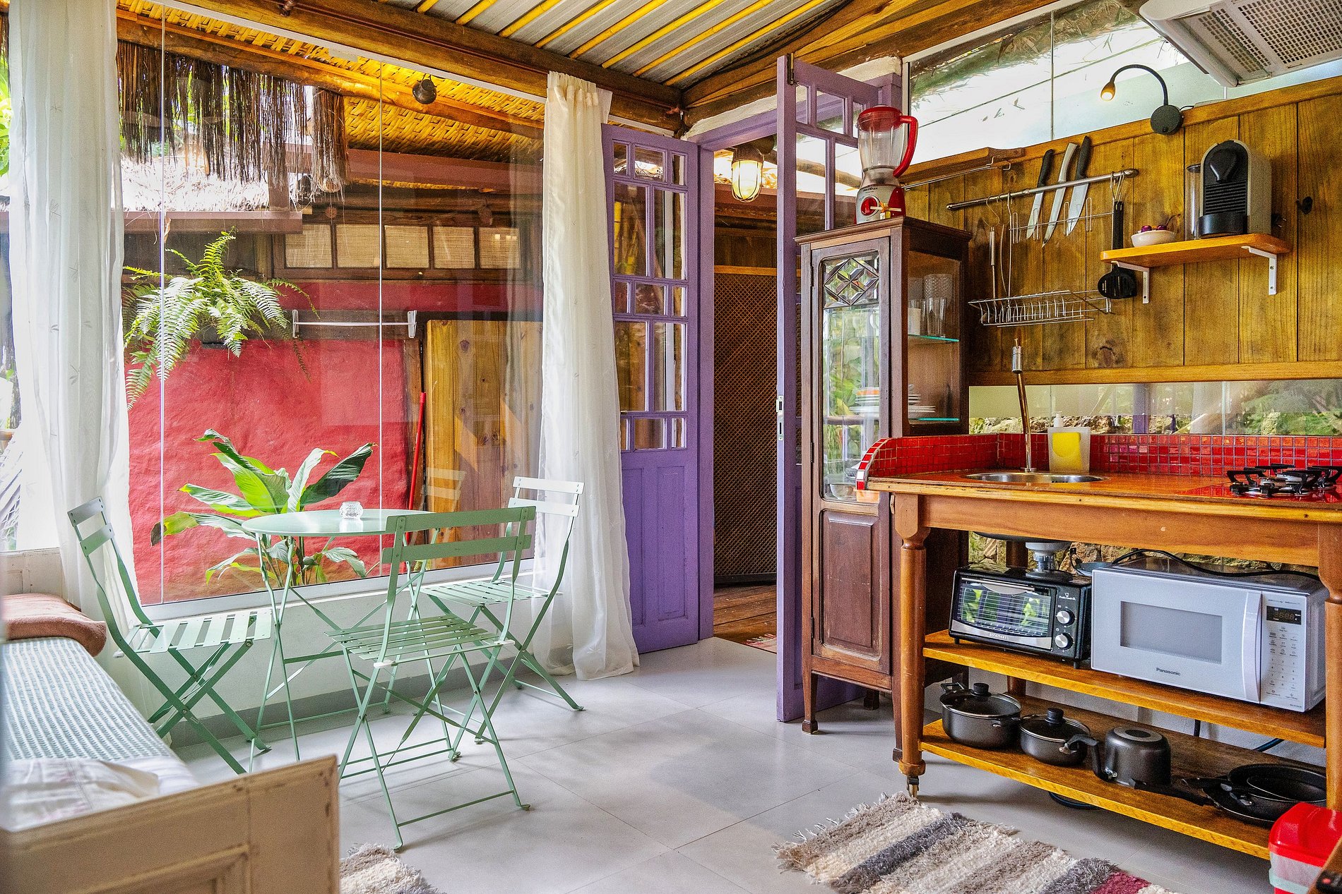 A Casa Luz possui quarto amplo, cozinha, banheiro e varanda espaçosa com vista parcial para o mar e ao lado da queda d'água, que harmoniza o ambiente com o som das águas! Além de oferecer cozinha completa, com todos os equipamentos necessários a casa conta ar condicionado, Smart TV, internet wifi, aquecedor a gás e secador de cabelo.