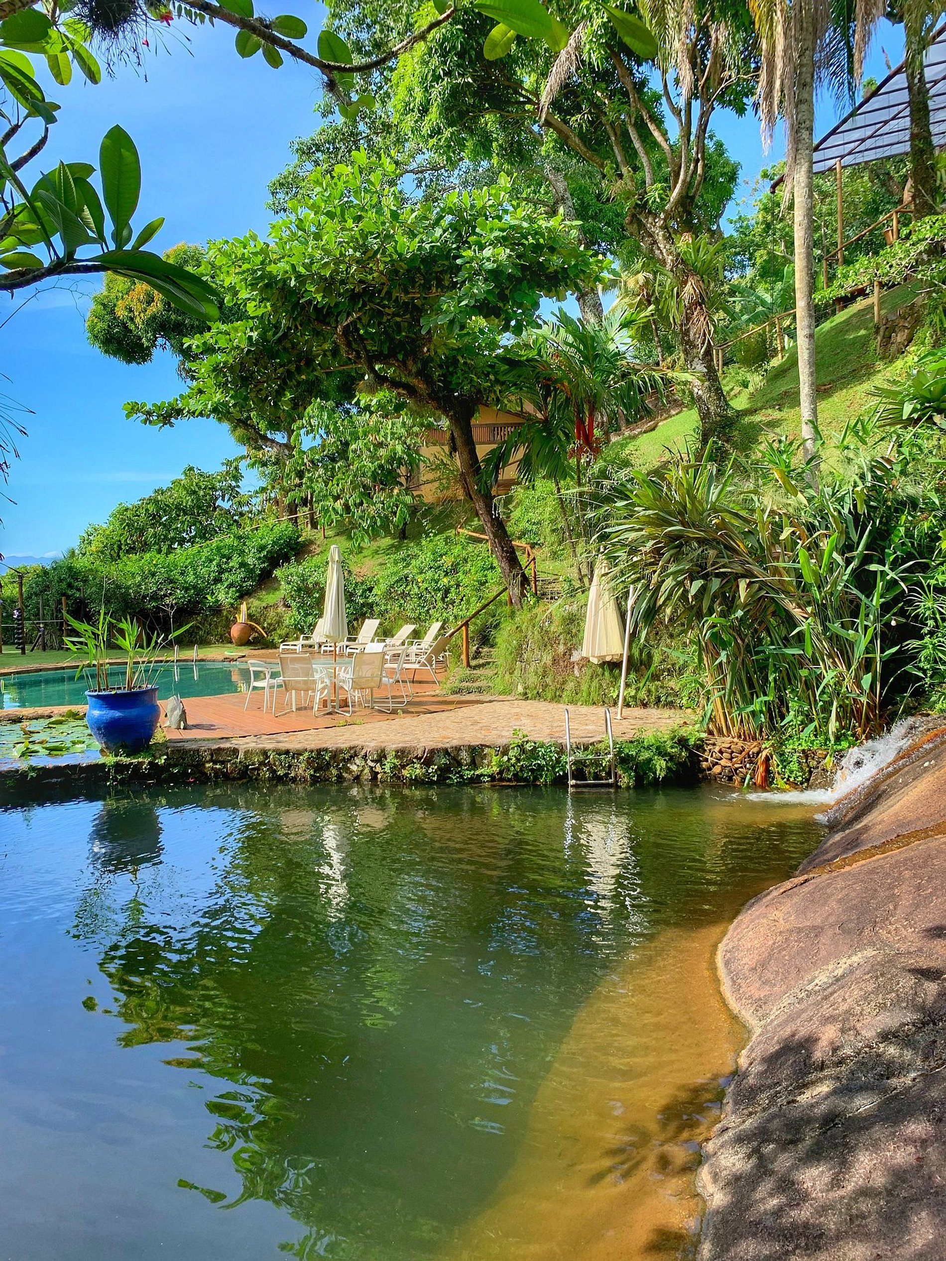 Located 600m from the village (historic center) and 300m from the nearest beach, Casa Ateliê is in a 7,000m² ornamental garden with frontal views of the sea, 4 natural pools with water from the waterfall, as well as one with treated water and stone bottom, complete kiosk, dining tables with splendid views of the sea, gym area, as well as waterfalls spread throughout the property. Here you will find everything you need for unforgettable days of rest and immersion in nature without giving up top-notch comfort and proximity to the city's main attractions!