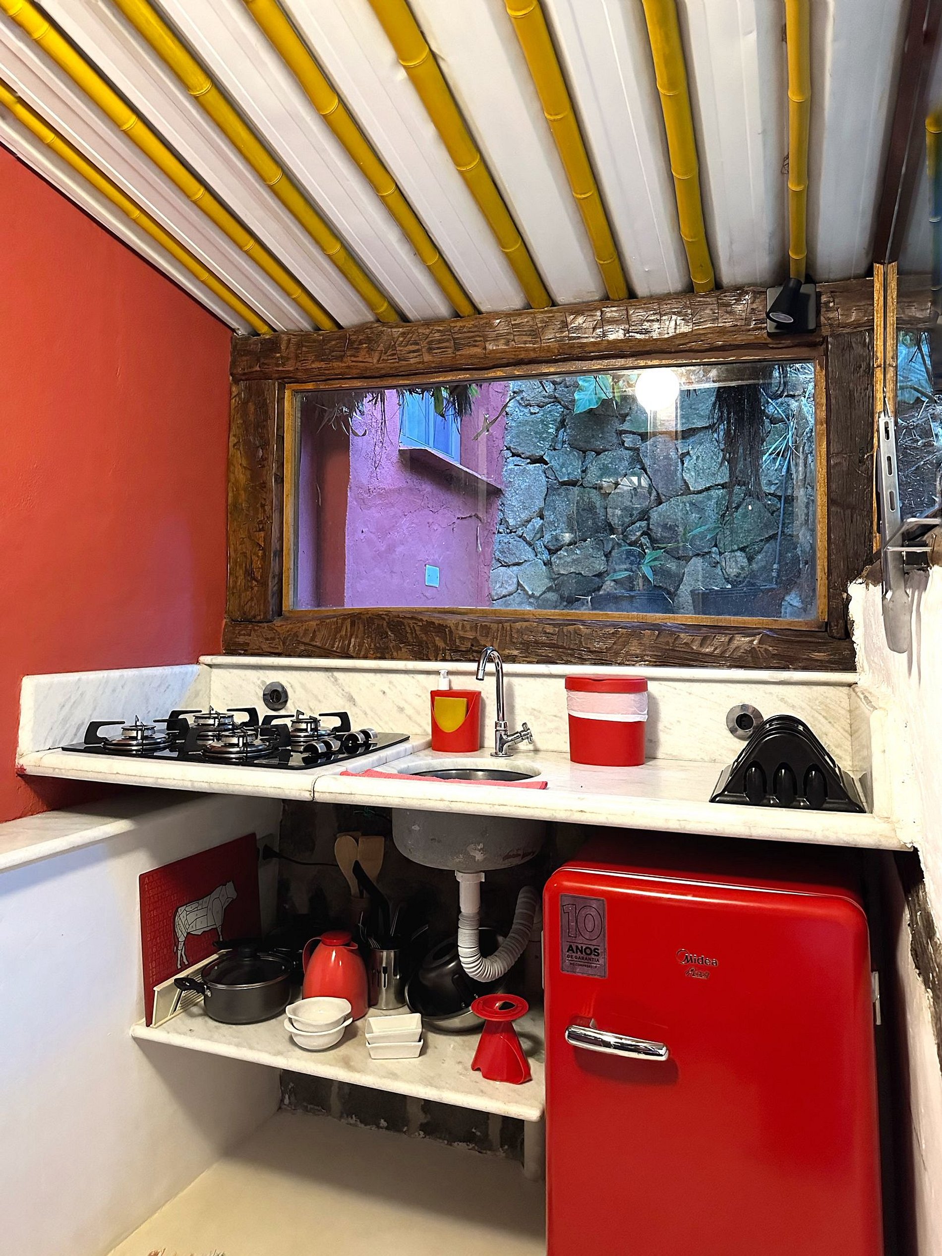 Casa Cachoeira dispone de un amplio dormitorio con aire acondicionado, Wifi y Smart TV, una cocina totalmente equipada con todo lo necesario para una estancia perfecta, baño con ducha de gas, secador de pelo con vistas a la cascada, y un amplio balcón frente a la cascada (cascada natural) que ¡Armoniza el ambiente con el sonido del agua!