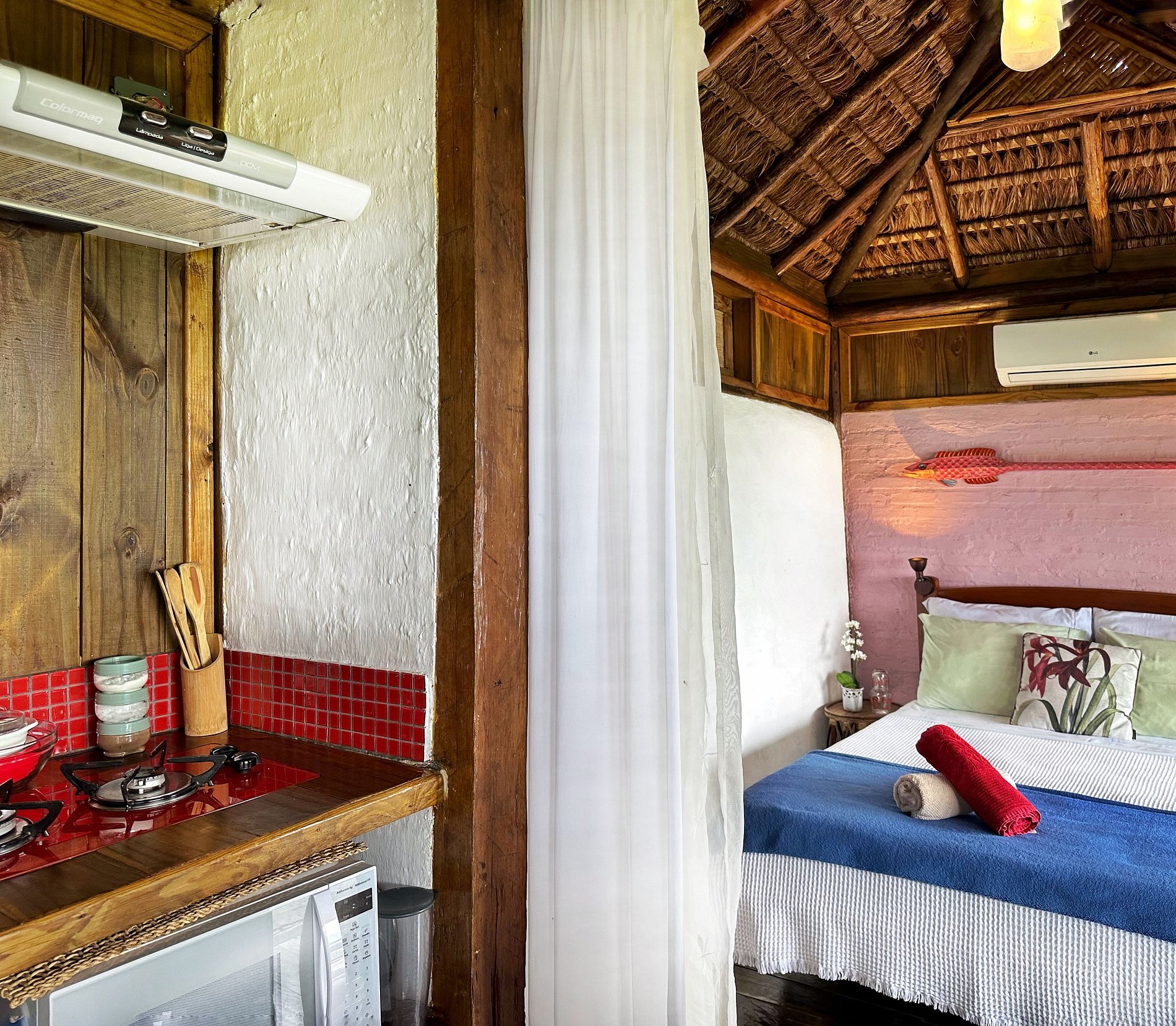 Casa Ateliê tiene un dormitorio con SmarTV, cocina, baño con duchas de gas y vista al mar, y un amplio balcón con mesa, hamaca, vista al mar y al lado de la cascada, que armoniza el ambiente con el sonido de las aguas. Además de ofrecer una cocina totalmente equipada con todo el equipamiento necesario, la casa dispone de aire acondicionado, Smart TV, internet WiFi, estufa de gas y secador de pelo.