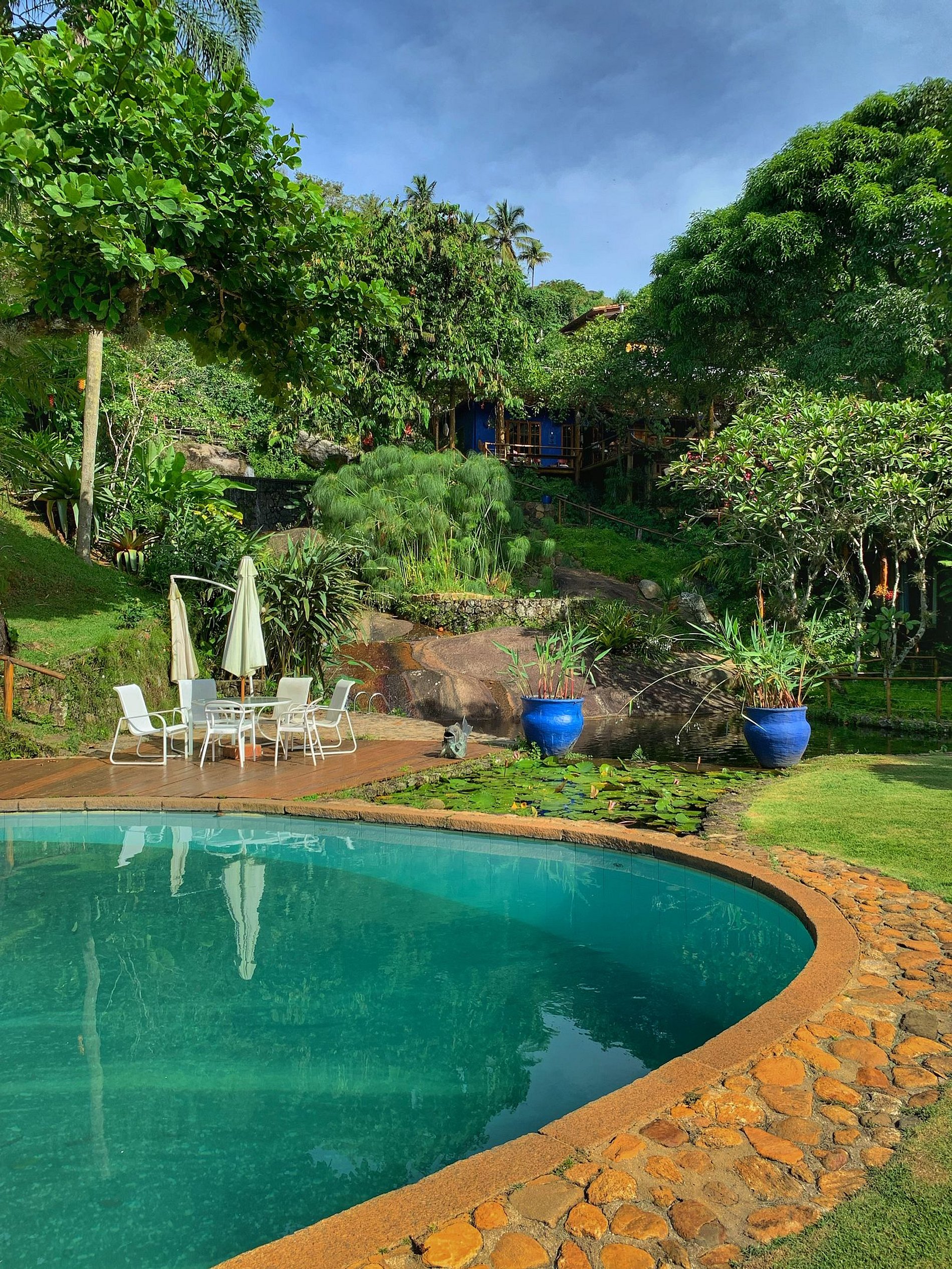 Localizada a 600m da Vila (centro histórico) e a 300m da praia mais próxima, a Casa Bambzinho está em um jardim ornamental de 7.000m² com vista frontal para o mar, 4 piscinas naturais com água da cachoeira, além de uma de água tratada e fundo de pedra, quiosque completo, mesas para refeição com vista esplêndida para o mar, área de ginástica, além de quedas d’água espalhadas pela propriedade. Aqui você encontra tudo o que precisa para dias inesquecíveis de descanso e imersão à natureza sem abrir mão de um conforto de primeira e proximidade às principais atrações da cidade!